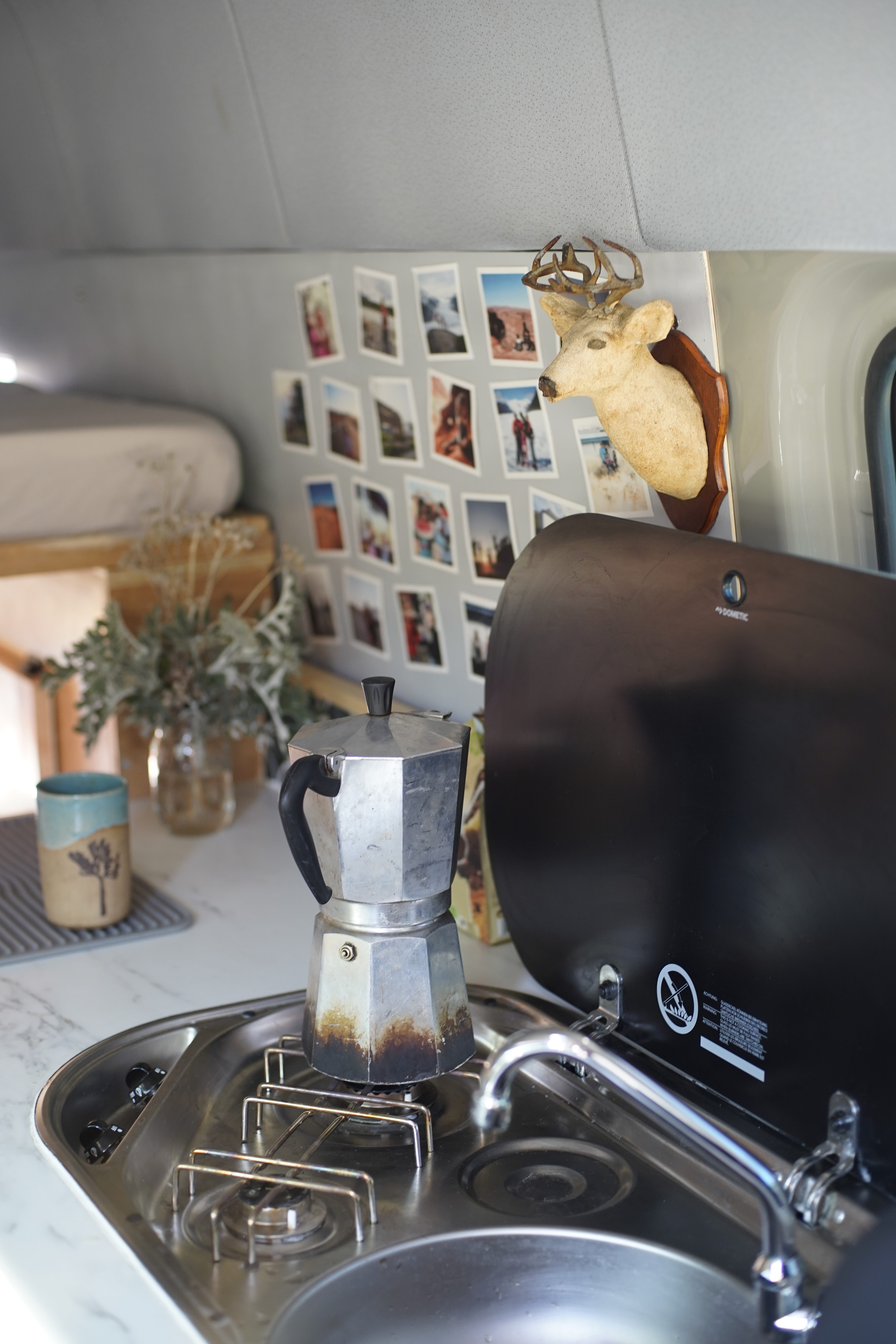 Our coffee tastes much smoother in this moka pot compared to a coffee maker. I love the simple design and that I don’t have to purchase coffee liners. I love how easy it is to clean while living on the road. The middle part with the grounds can get dumped directly in the trash with minimal water usage… which is important when living off-grid on the road.